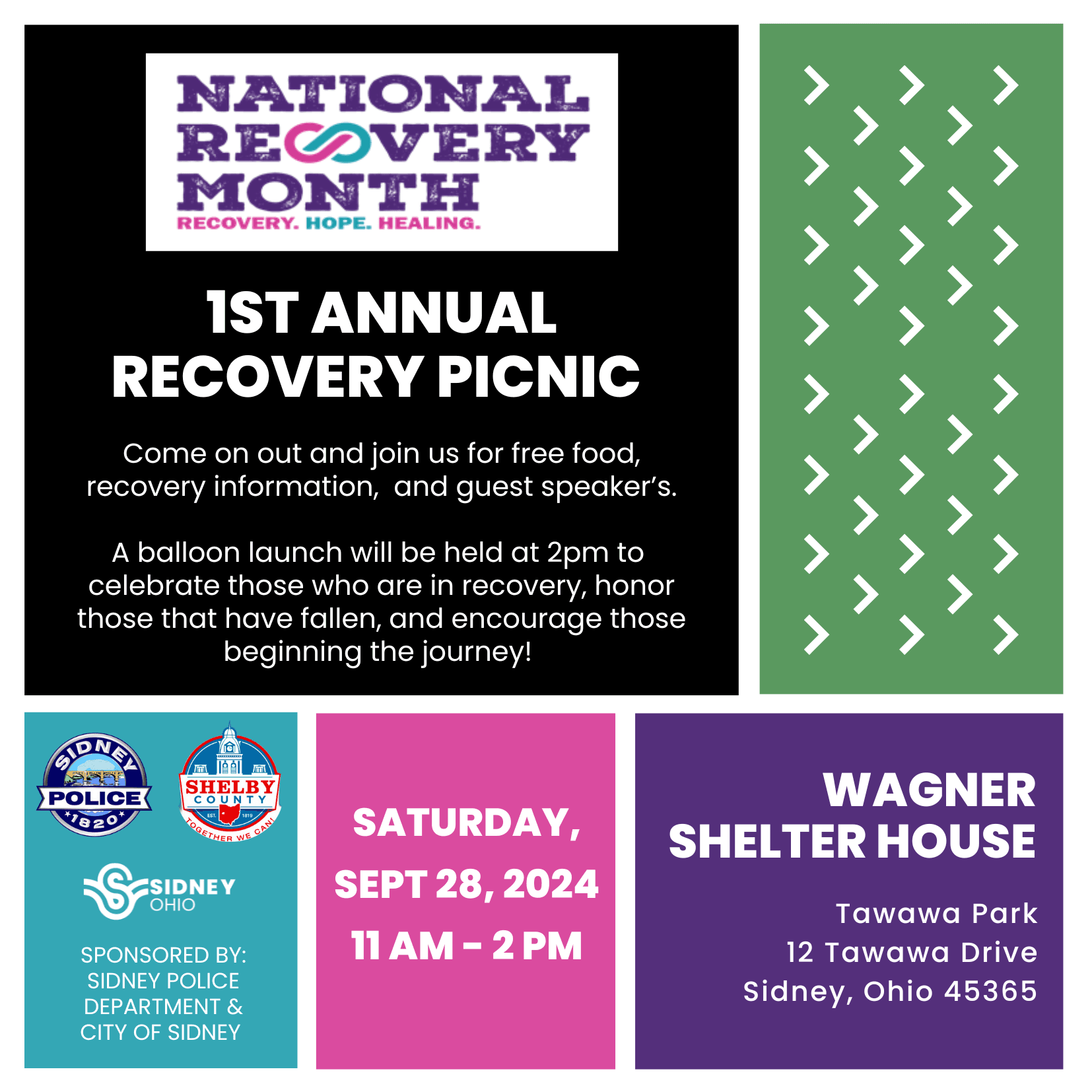 A balloon launch will be held at 2pm to celebrate those who are in recovery, honor those that have fallen, and encourage those beginning the journey!